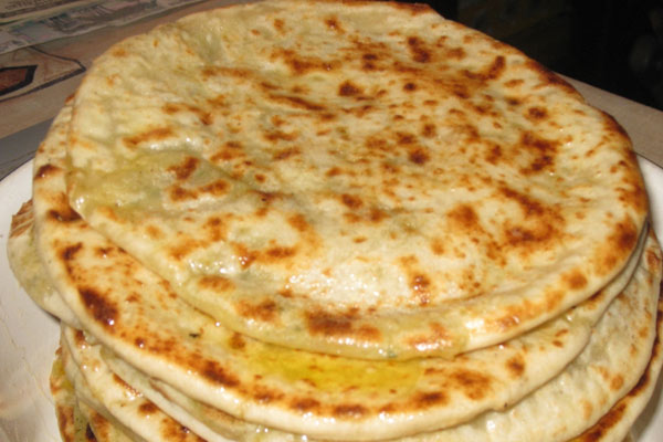 Положите выпекать в разогретую сковороду. Обжарьте хичины на сухой сковороде, с двух сторон, до золотистого румянца. Во время жарки, хичины могут вздуться, не переживайте, и не протыкайте их, просто переложите аккуратно на блюдо и смажьте обильно сливочным маслом. Хичины снова осядут.